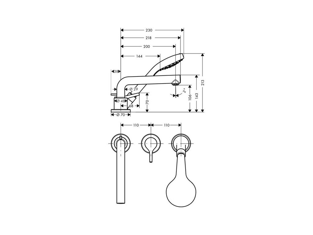 - obsahuje: 3-otvorová páková armatura na okraj vany, ruční sprcha, sprchový držák