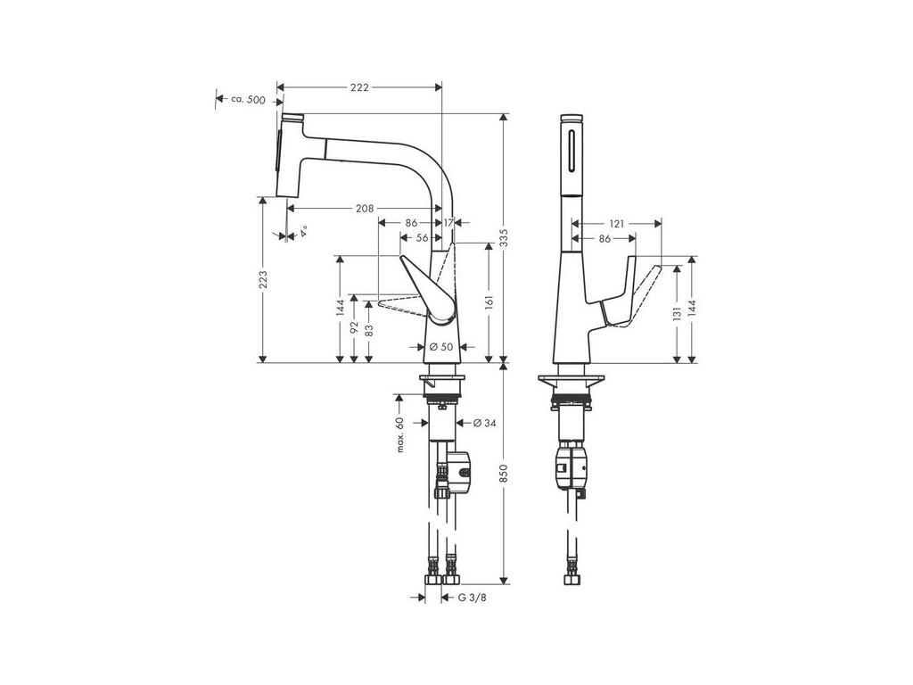Hansgrohe Talis Select M51 Baterie dřezová s vytahovací sprškou, nerezová ocel 72824800