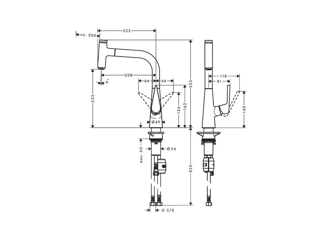 Hansgrohe Talis Select M51 Baterie kuchyňská páková 220, 72822000