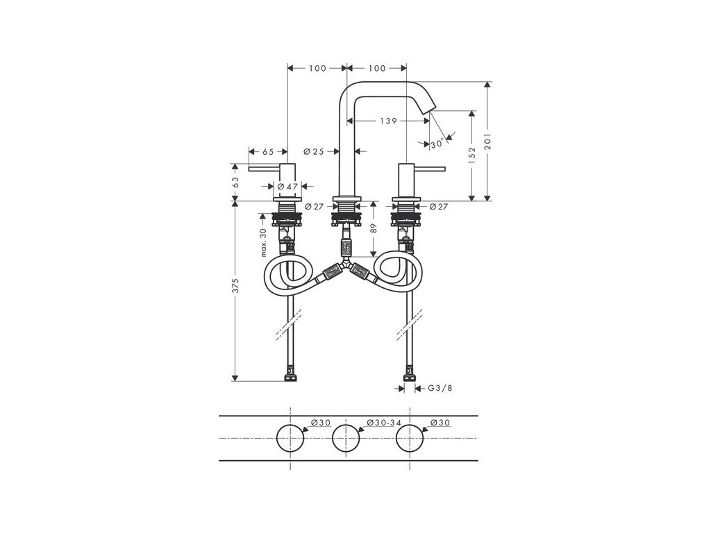 - obsahuje: tříotvorová umyvadlová baterie, odtoková souprava