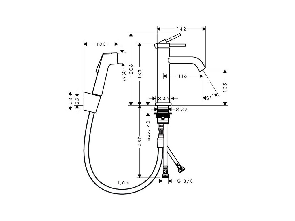Hansgrohe Tecturis S Baterie umyvadlová s bidetovou sprškou a hadicí, chrom 73211000