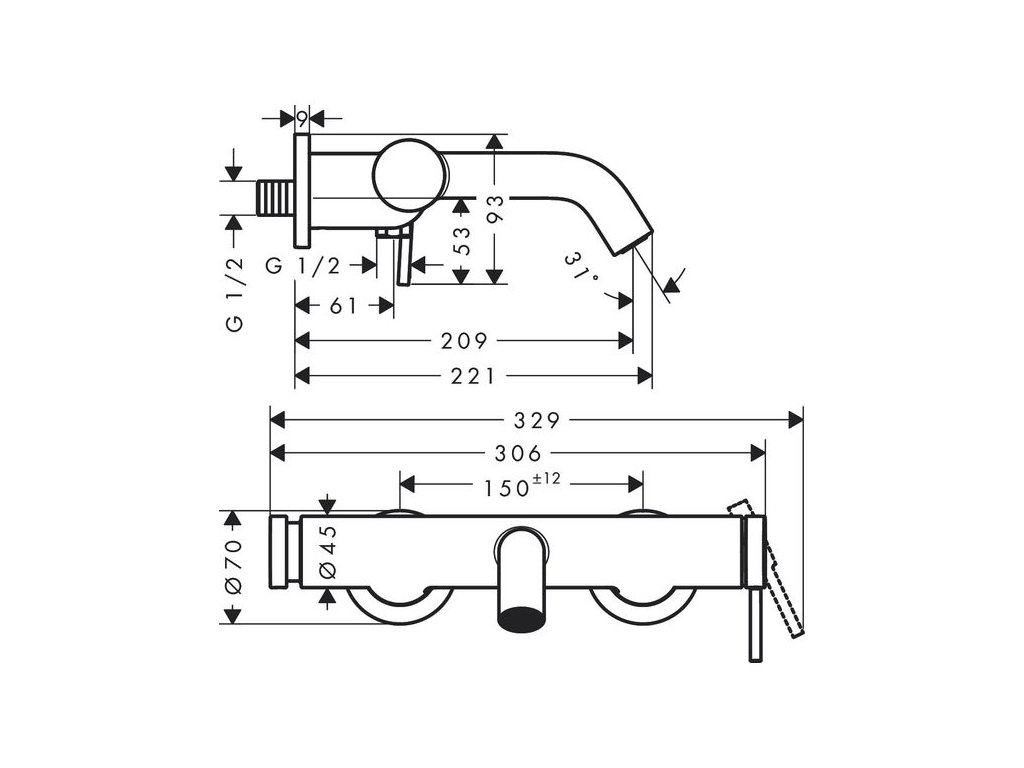 - vzdálenost středu: 150 mm ± 12 mm