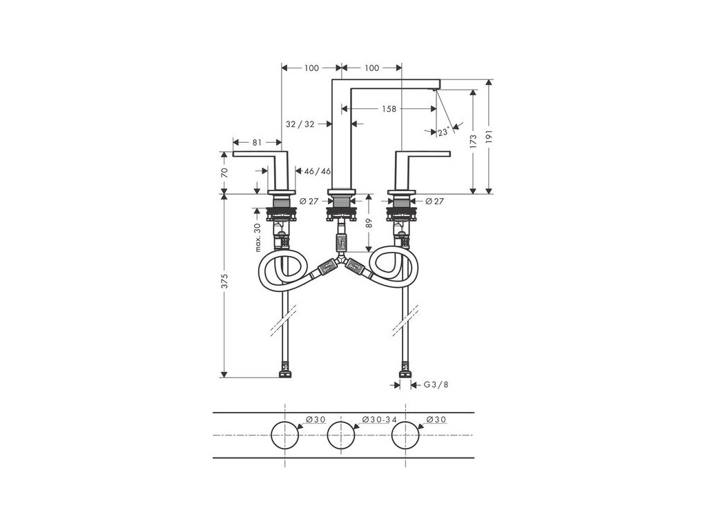 - obsahuje: tříotvorová umyvadlová baterie, odtoková souprava
