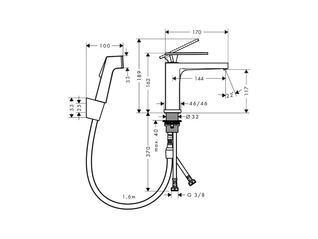 - obsahuje: páková umyvadlová baterie, ruční sprcha Bidette, držák sprchy, sprchová hadice