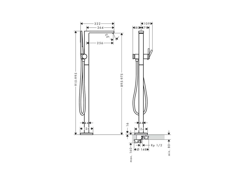 - obsahuje: páková vanová baterie volně stojící na podlaze, tyčová ruční sprcha, sprchová hadice, držák sprchy
