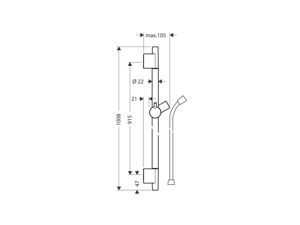 - obsahuje: sprchová tyč, sprchová hadice, jezdec