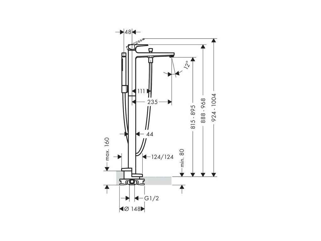 - obsahuje: páková vanová baterie stojící na podlaze, tyčová ruční sprcha, sprchová hadice, sprchový držák