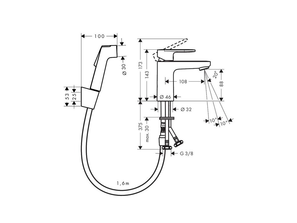 - obsah balení: páková umyvadlová baterie, bidetová ruční sprcha, držák sprchy, sprchová hadice