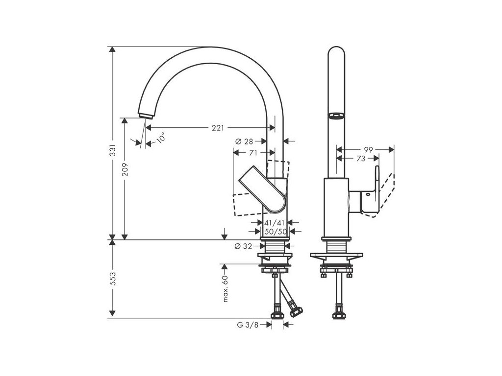 Hansgrohe Vernis Shape Baterie dřezová s otočným ramenem, chrom 71871000