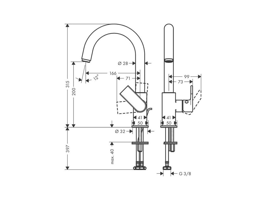 Hansgrohe Vernis Shape Baterie umyvadlová s výpustí a otočným ramenem, chrom 71564000