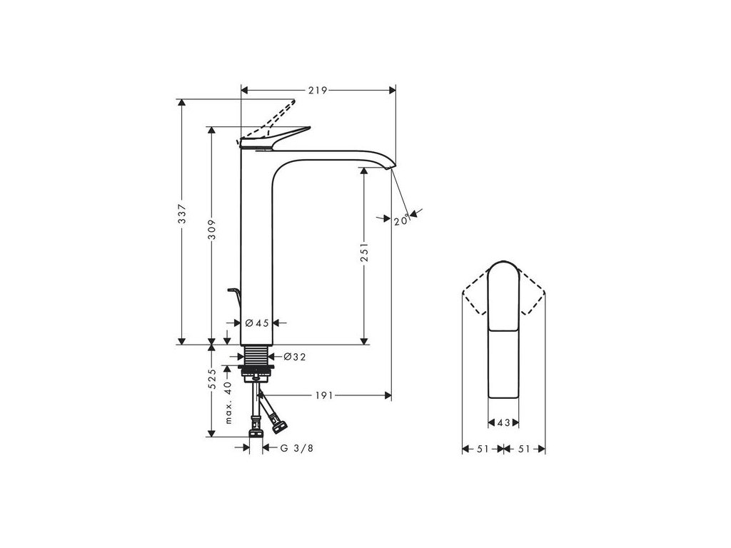 - výtok: 191 mm