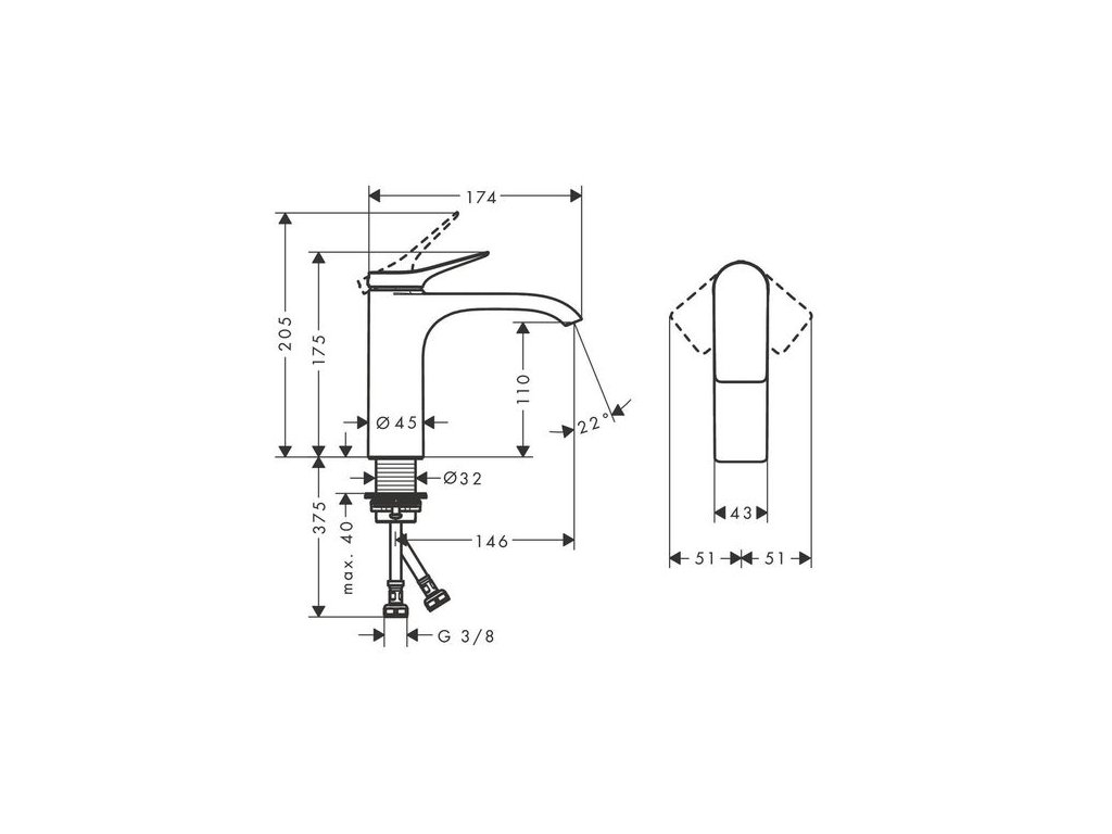 Hansgrohe Vivenis Baterie umyvadlová páková bez odtoku, chrom 75022000