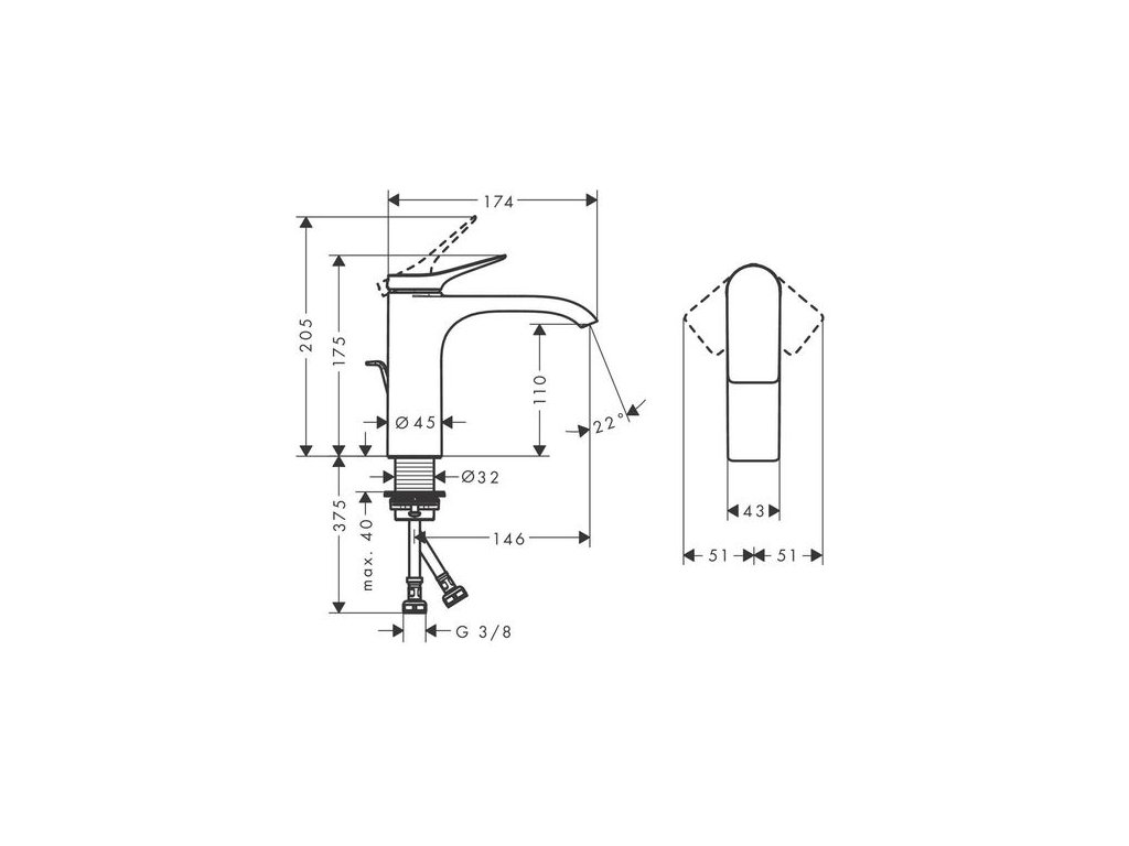 Hansgrohe Vivenis Baterie umyvadlová páková s táhlem, černá mat 75020670