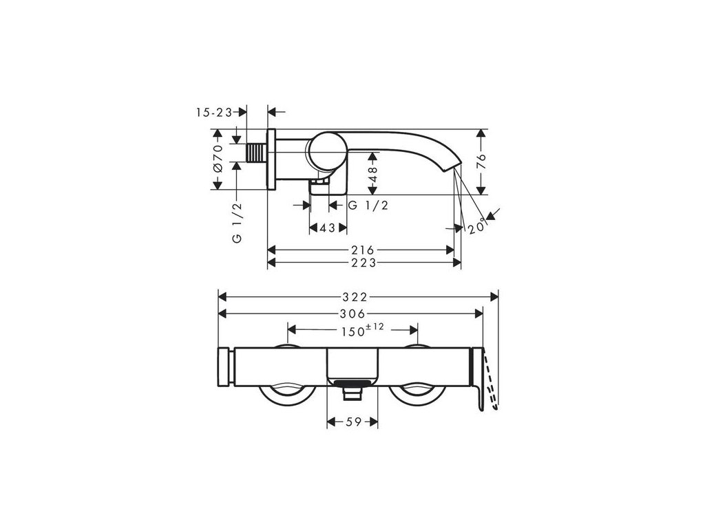 - rozteč středů: 150 mm ± 12 mm