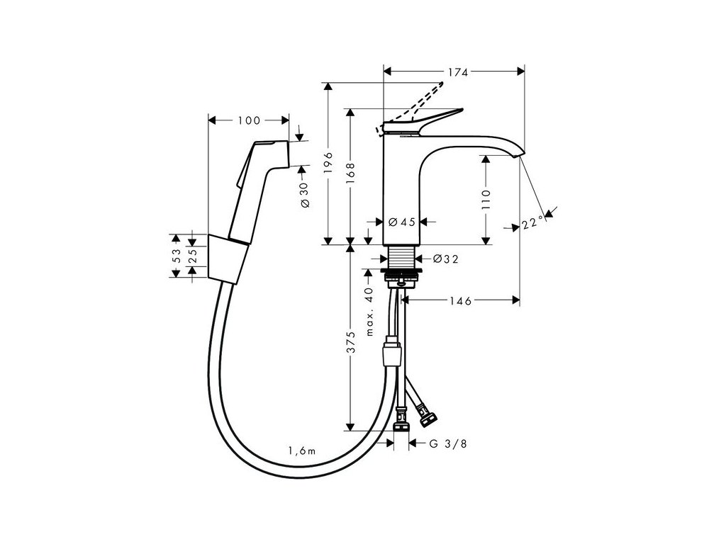 Hansgrohe Vivenis Baterie umyvadlová s ruční sprchou Bidette a hadicí, chrom 75210000