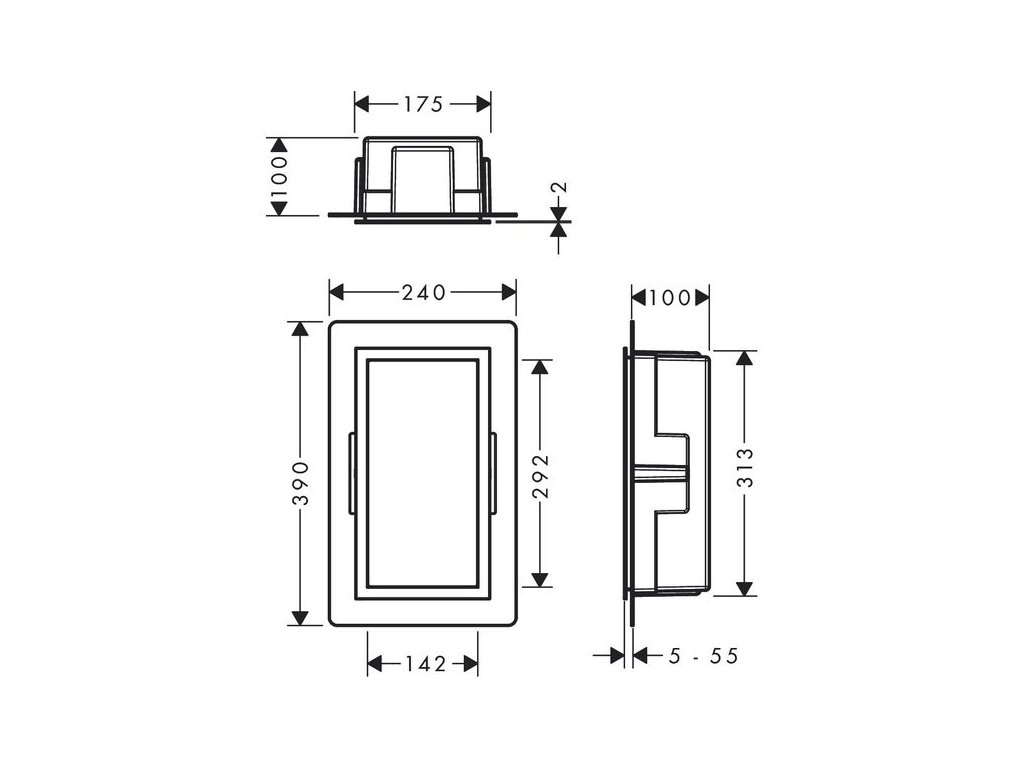 - rozměry výklenku do stěny: 300 x 150 x 100 mm (V x Š x H)
