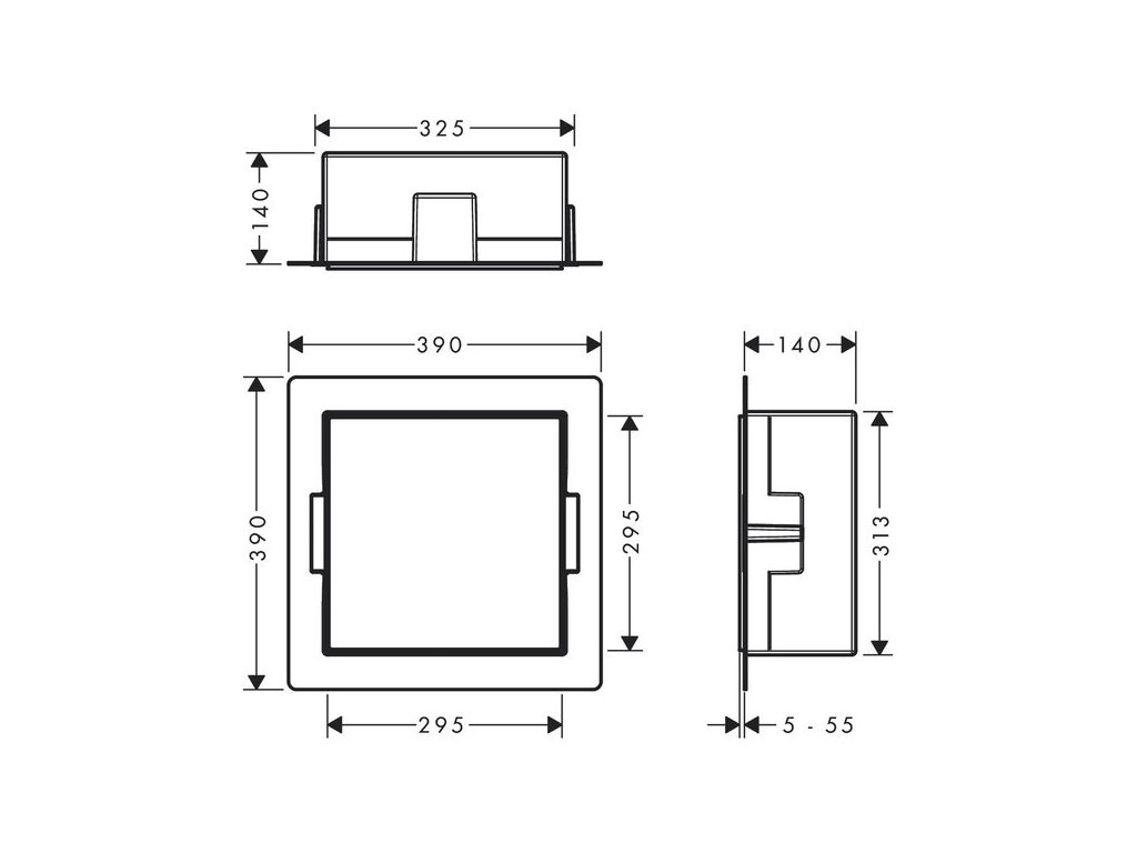 - rozměry výklenku do stěny: 300 x 300 x 140 mm (V x Š x H)