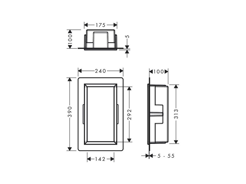 - rozměry výklenku do stěny: 300 x 150 x 100 mm (V x Š x H)
