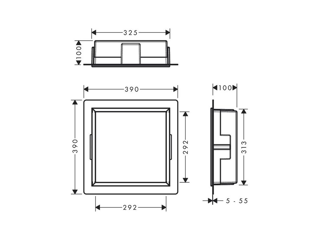 - rozměry výklenku do stěny: 300 x 300 x 100 mm (V x Š x H)