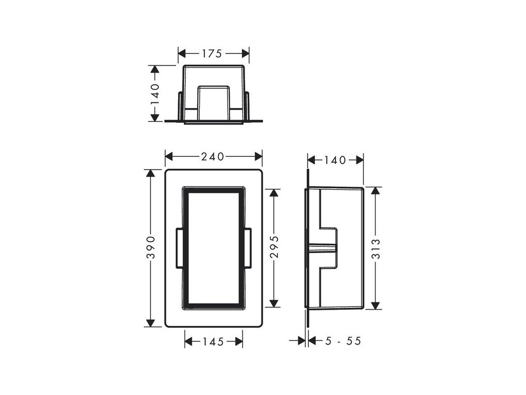- rozměry výklenku do stěny: 300 x 150 x 140 mm (V x Š x H)