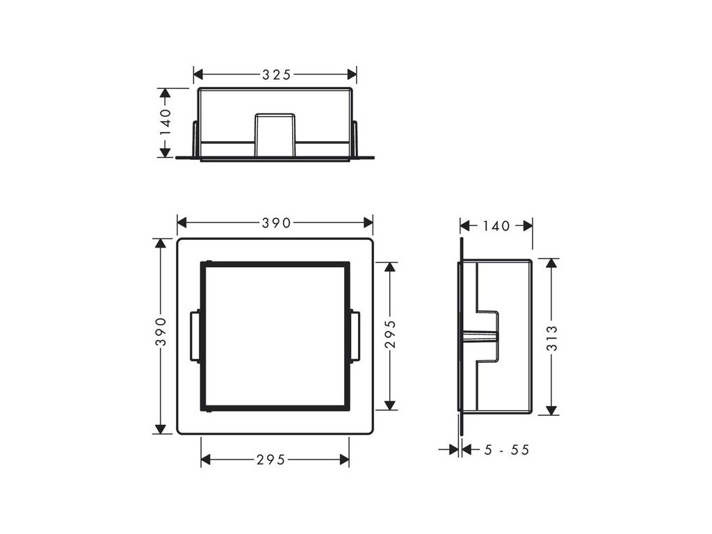 - rozměry výklenku do stěny: 300 x 300 x 140 mm (V x Š x H)