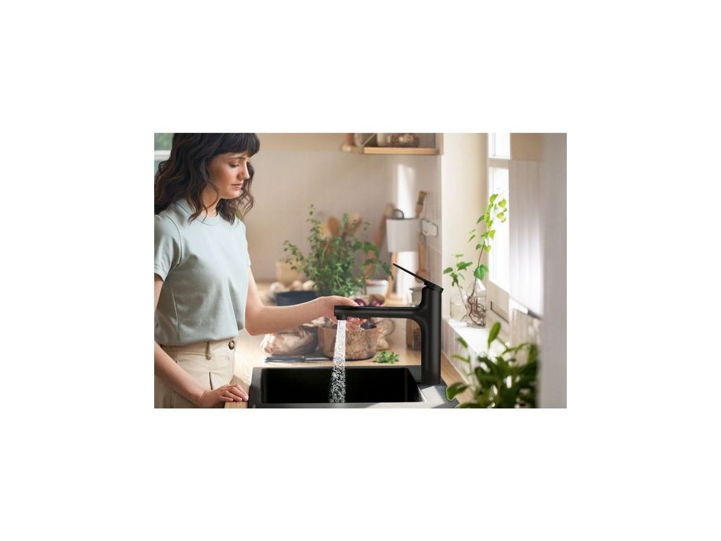 Hansgrohe Zesis M33 Baterie dřezová s vytažitelnou sprchou, 2jet, matná černá 74822670