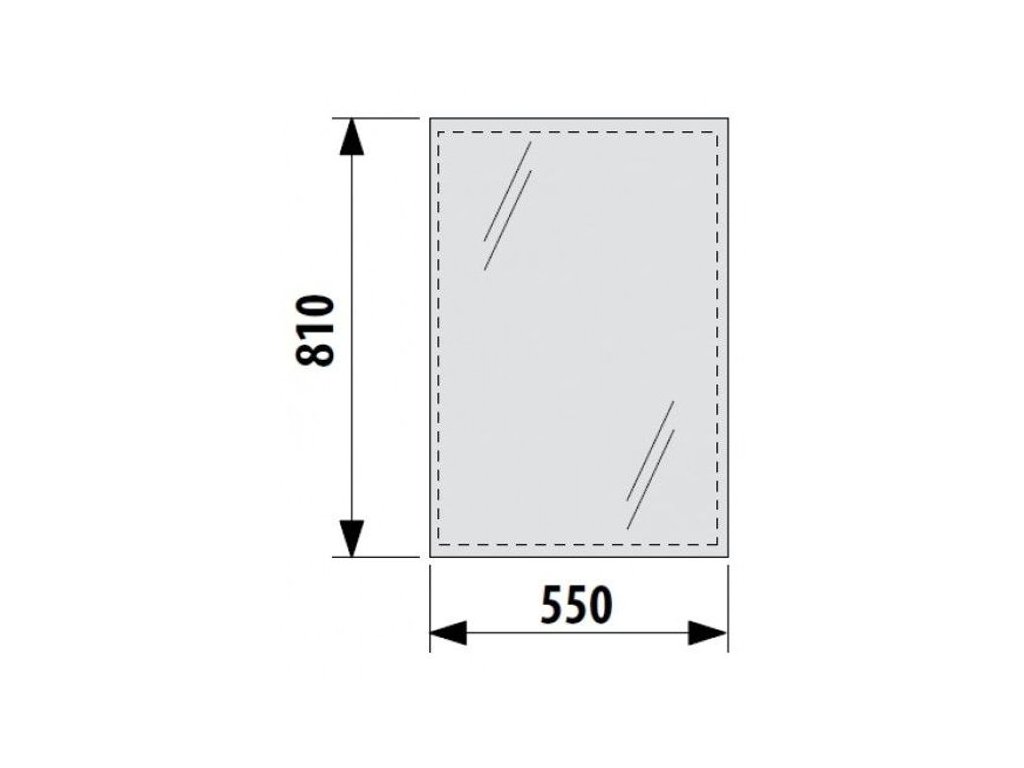 Zrcadlo včetně úchytů na zeď, nelze otočit o 90 stupňů. Fazeta 5 mm, na hliníkovém rámečku 3 stranném, s možností doplnění o světlo a vyhřívací fólii do rozměru 574 × 274 mm.Doplňkové parametry