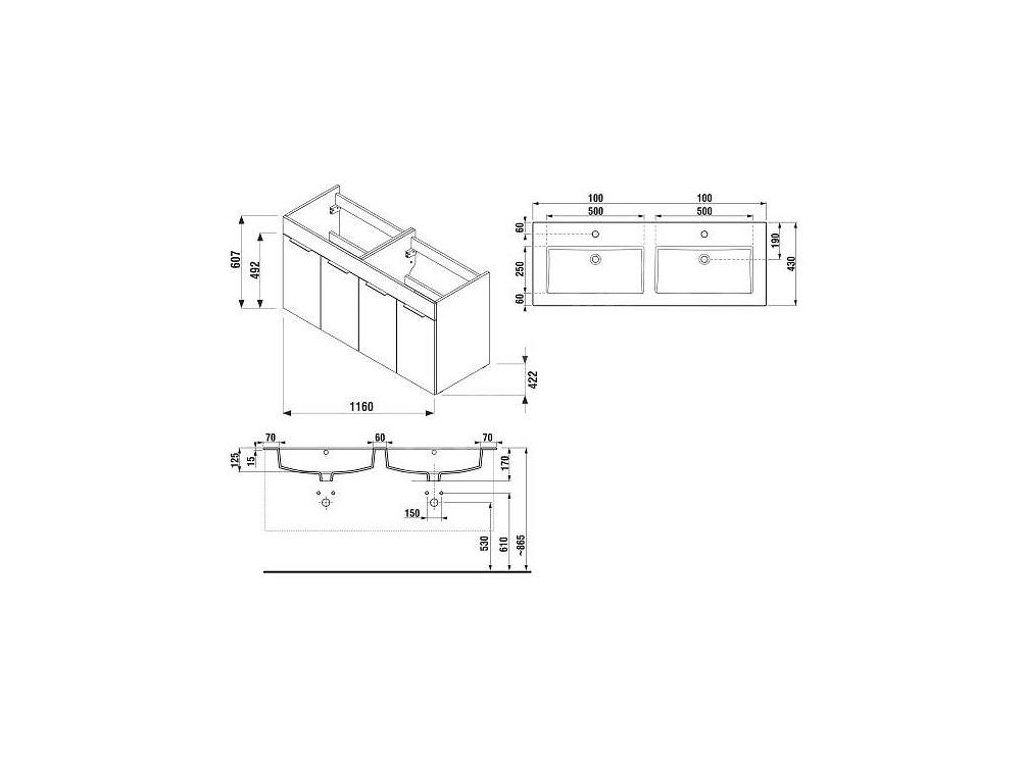 - včetně dvojumyvadla 120 x 43 cm s odkládací plochou