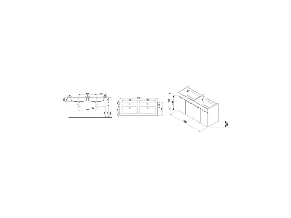 - Skříňka pod umyvadlo se 4 dveřmi čistě geometrických tvarů je nabízena ve výhodném balení spolu s umyvadlem Cube 1200 x 430 mm s odkládací plochou