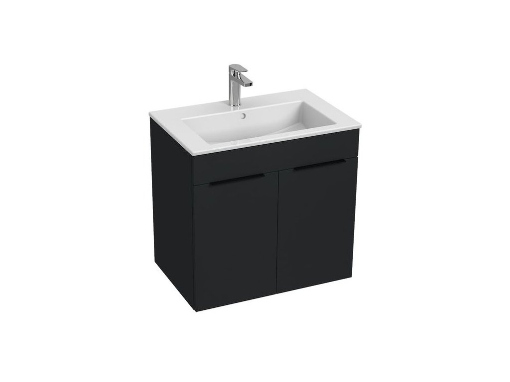 - Skříňka s 2 dveřmi čistě geometrických tvarů je nabízena ve výhodném setu spolu s umyvadlem Cube 650 x 430 mm s odkládací plochou