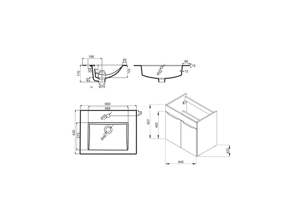 - včetně umyvadla 65 x 43 cm s odkládací plochou