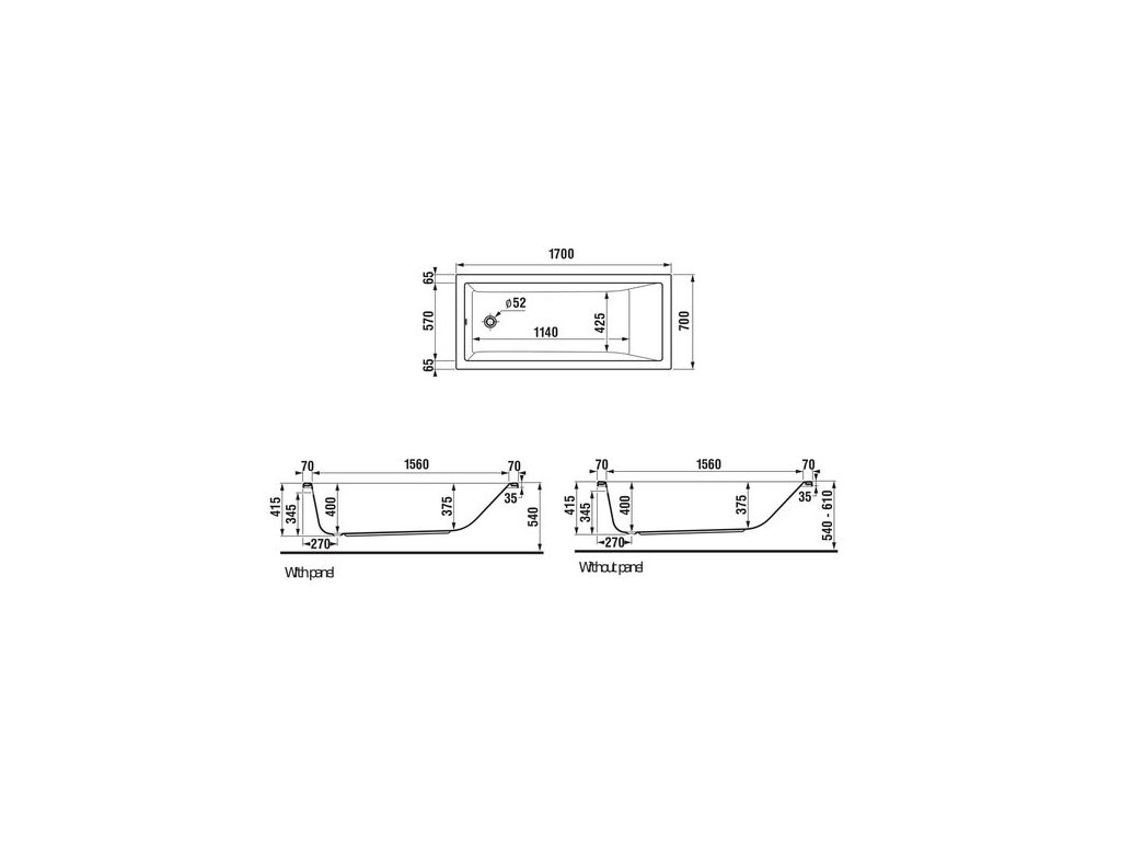 Jika Cubito Pure Obdélníková vana 170 x 70 cm, bílá H2244200000001