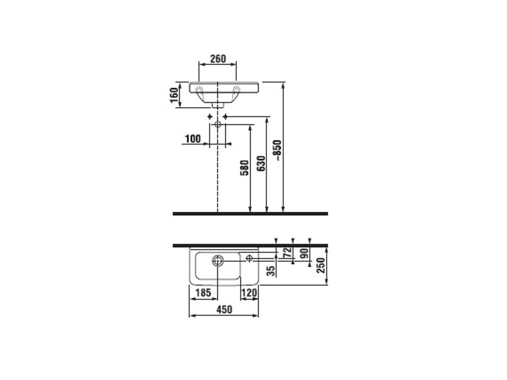 Jika Cubito Pure Umývátko asymetrické 45x25, otvor vpravo, bílé H8114240001061