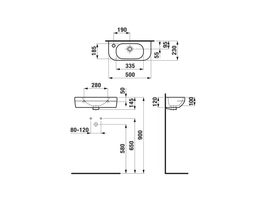 Jika Deep Umývátko 50x23cm s otvorem vlevo, bílá H815082000J051