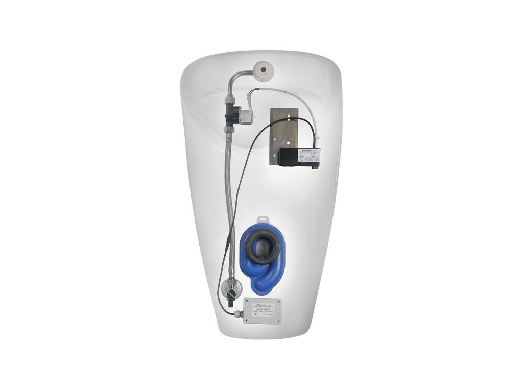 Pisoár s vnitřním přívodem vody, radarovým senzorem a bateriovém napájením. Tento výrobek obsahuje radarovou elektroniku na montážní liště - napájení 6 V, elektromagnetický ventil, propojovací hadice, rohový ventil s filtrem a zpětnou klapkou, vtokovou armaturu s těsněním, sifon (0,5-4 l), pouzdro na baterie, napájecí baterie 4 ks AA alkalické 1,5 V, 2700 mAh, upevňovací sadu, montážní šablonu. Dalším benefitem tohoto urinalu je Antibak (glazovaný vnitřní okruh a odpad zabraňující ulpívání nečistot).