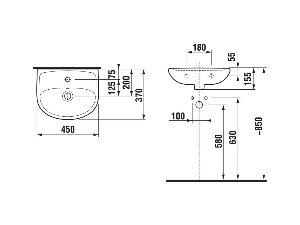 Jika Lyra Plus Umývátko 45x37, bez otvoru H8153820001091