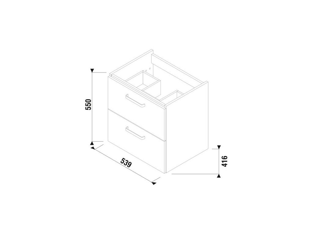 Skříňka pod umyvadlo, rozměry 53,9x41,6x55 cm, 2 zásuvky, povrchová úprava korpusu bílá, povrchová úprava zásuvek bílá lesk, madla nerez. Umyvadlo na skříńku není standardní součástí dodávky a je nutno jej dokoupit zvlášť. Kompatibilní modely naleznete v PŘÍSLUŠENSTVÍ.