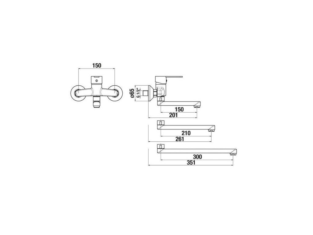 UMYVADLOVÁ NÁSTĚNNÁ BATERIE S RAMÉNKEM 150 MM, CHROM