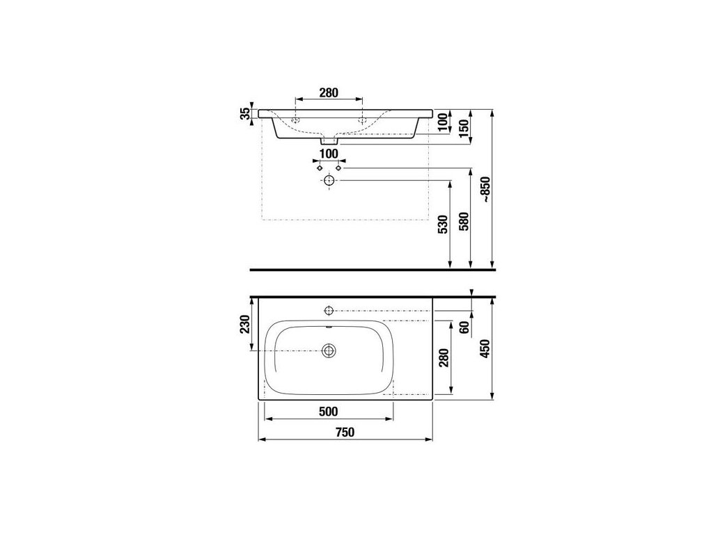Jika Mio N Umyvadlo 75 cm asymetrické, s otvorem pro baterii, pravé, bílá H8117100001041