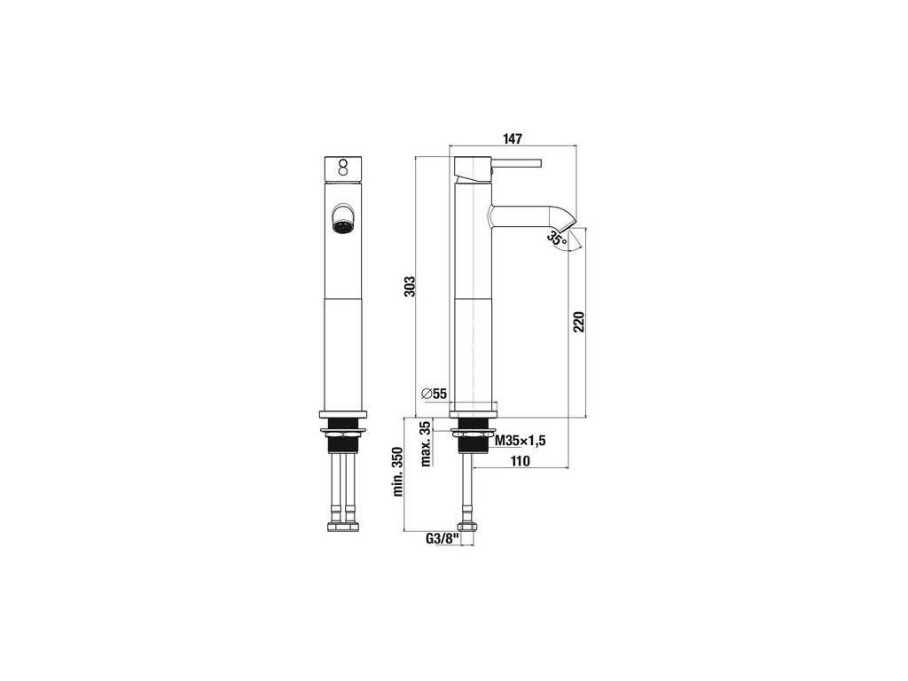 Série koupelnových baterií Mio Style patří mezi oblíbenou řadu díky elegantním tvarům a jednoduchým pákovým ovládáním. Umyvadlová stojánková baterie s výškou 220 mm je určena pro umyvadlové mísy. Obsahuje velmi kvalitní keramickou kartuš (Ø 35 mm) a úsporný perlátor Neoperl s průtokem 5l/min. Perlátor je vyrobený ze speciálního materiálu proti usazování vodního kamene. Další výhodou vodovodní baterie jsou přepínače tj. klapka proti zpětnému nasátí znečištěné vody a funkce Cold Start, což znamená, že otevřením páky baterie ve střední poloze začne proudit studená voda. Baterie se dodává bez výpusti.