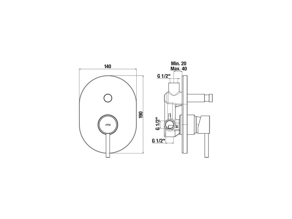 Jika Mio Style Baterie vanová/sprchová podomítková, černá matná