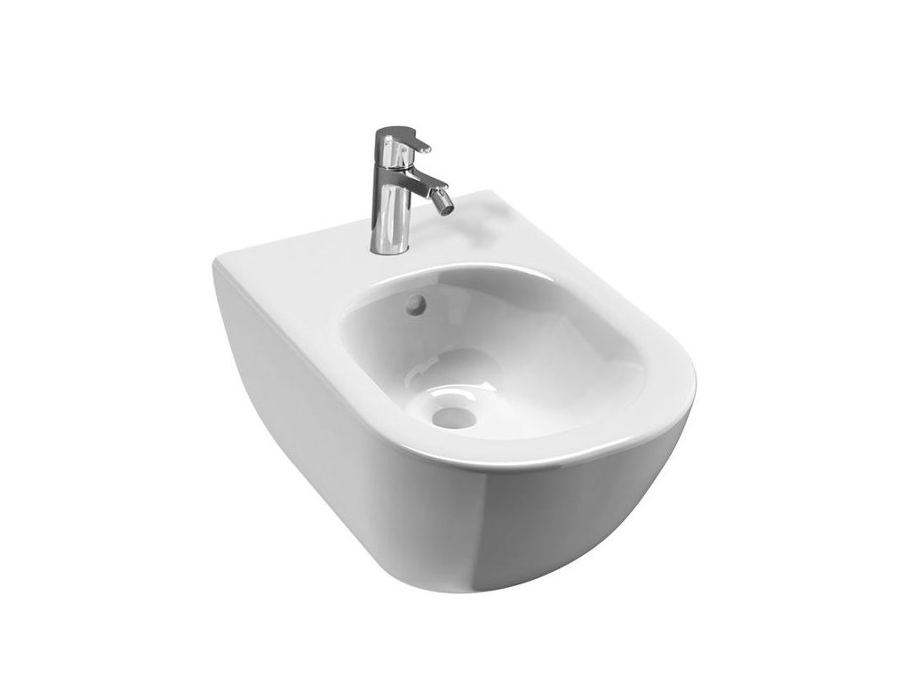 Oblé, elegantní, masivní tvary závěsného bidetu Mio evokující úsměv, vyvolává nejen touhu se ho dotknout, ale přináší do koupelny i klidnou atmosféru pohody.