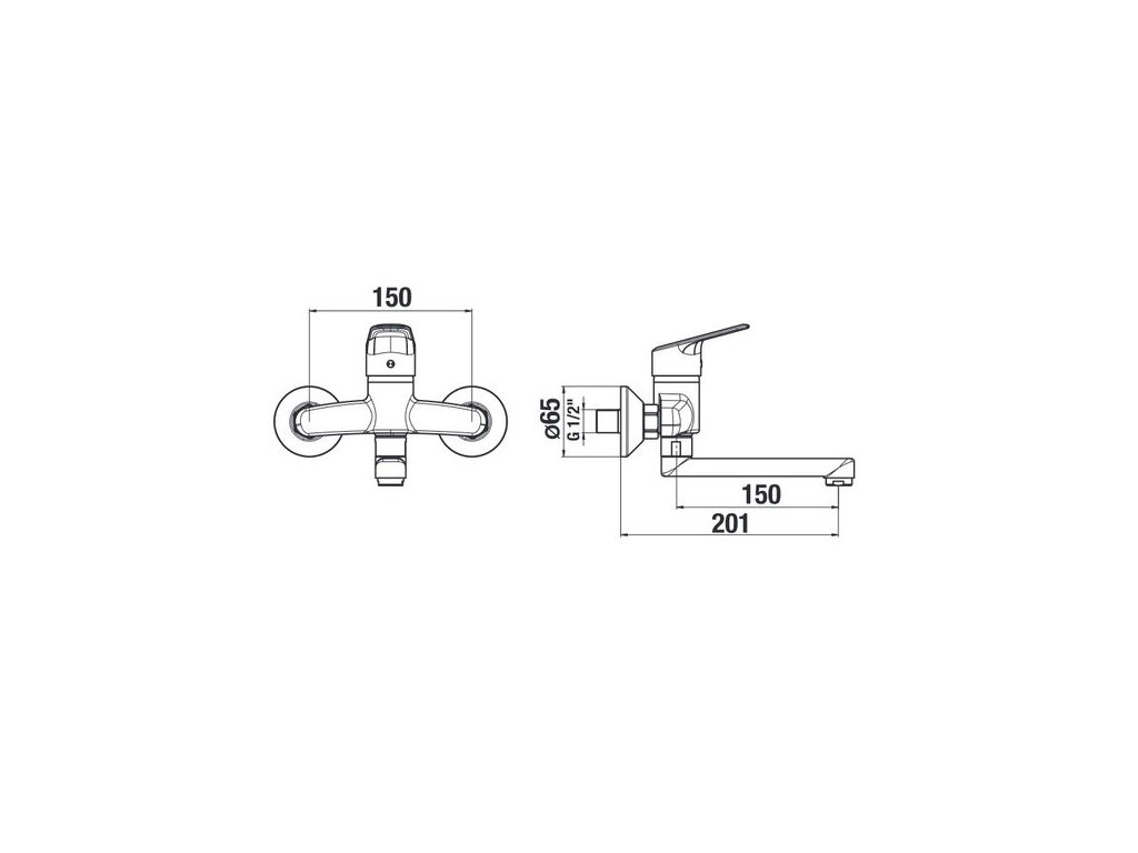 UMYVADLOVÁ NÁSTĚNNÁ BATERIE S RAMÉNKEM 150 MM, CHROM