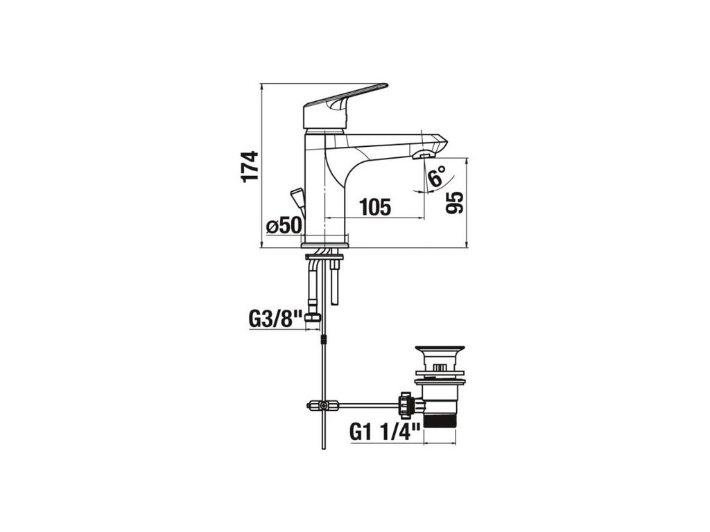 UMYVADLOVÁ STOJÁNKOVÁ BATERIE S PLASTOVOU VÝPUSTÍ, PRŮTOK 5 L/MIN, CHROM