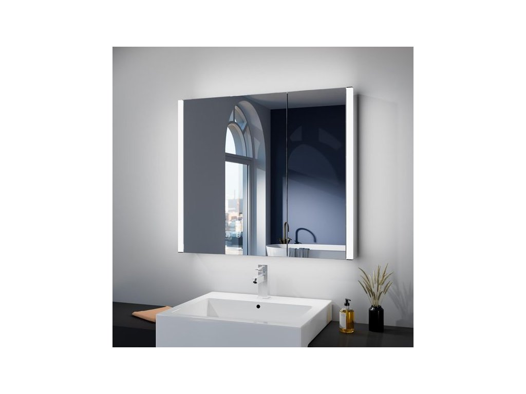 kielle Arkas I Zrcadlová skříňka s LED osvětlením, vyhříváním a USB portem, 80x70x13 cm, bílá 50111810