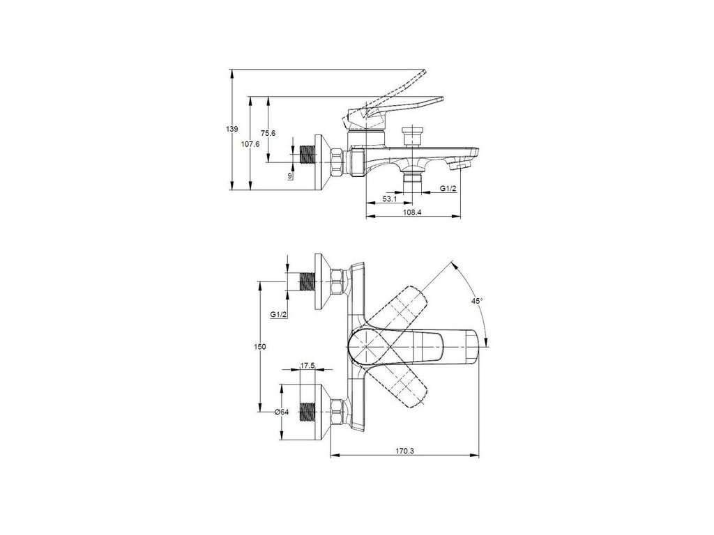 Nástěnná páková vanová baterie