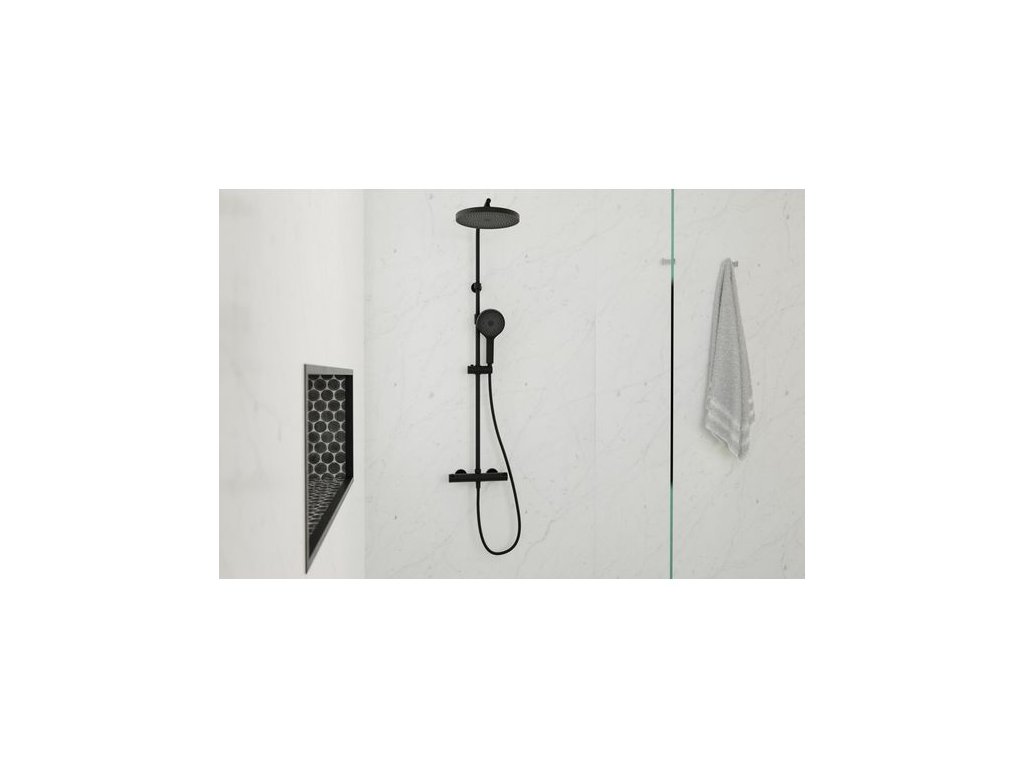 kielle Oudee Sprchový set s termostatem, 260 mm, 3 proudy, matná černá