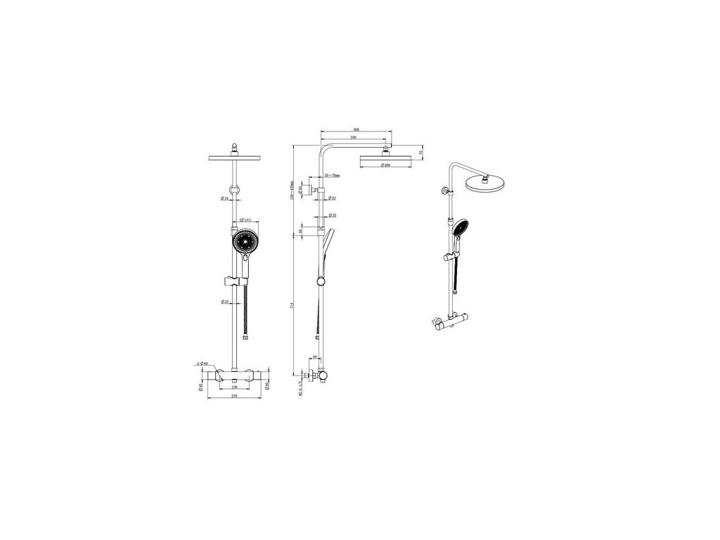 - možnost nastavení výšky umístění hlavové sprchy