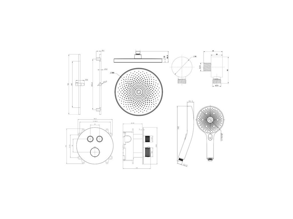 horní sprchu 260 mm se sprchovým ramenem 350 mm