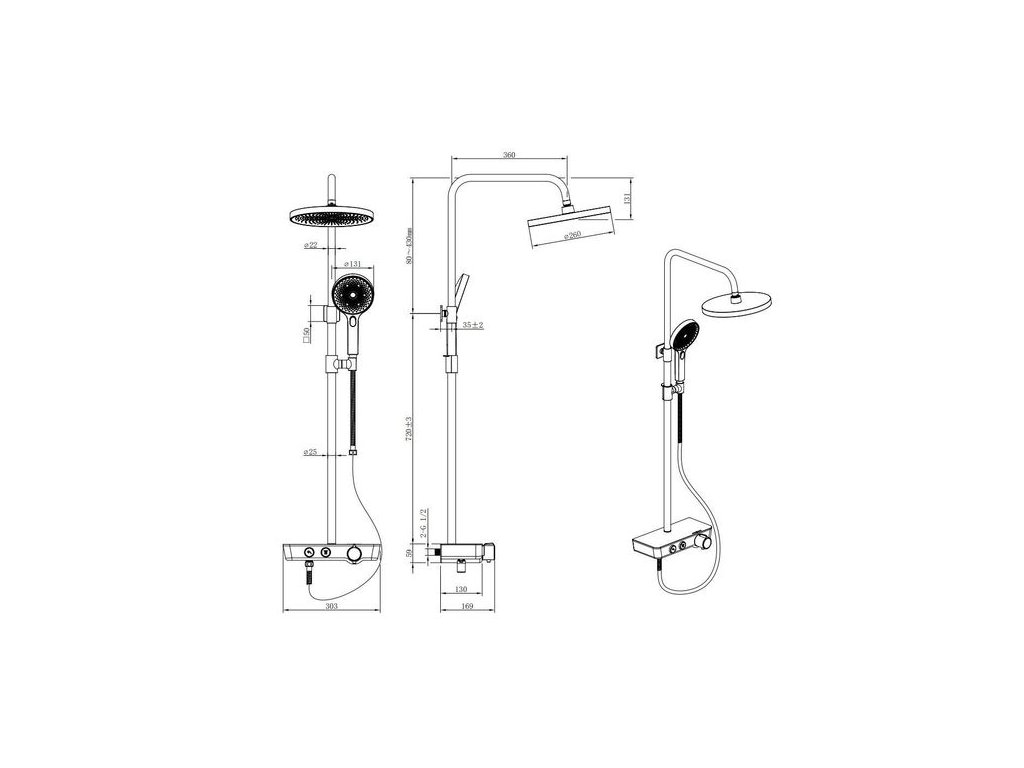 Srdcem sprchového setu Aura je termostatická baterie s roztečí 150 mm, díky které nastavíte teplotu i proud vody. Jednoduchým stisknutím tlačítka na sprchové baterii přepnete mezi horní sprchou a sprchovou hlavicí.